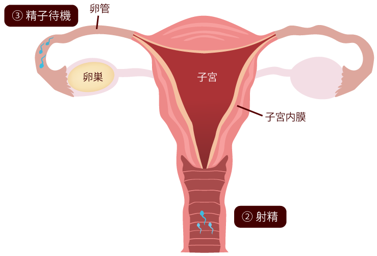 精子の寿命は女性の腟内に射精後3日~5日程度で、長い場合で1週間とされています。卵管に到達することができた精子は、卵巣から卵子が排卵されるのをそこで待つのです。