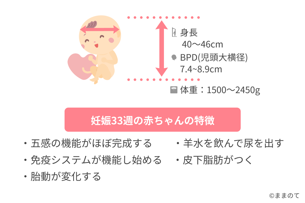 妊娠33週の赤ちゃんの基礎情報 身長、BPD、体重、発達