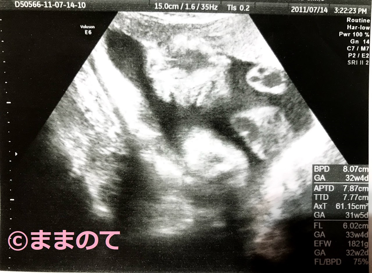 妊娠33週|胎動が激しい時期。胎児の成長や破水・早産【エコー写真】