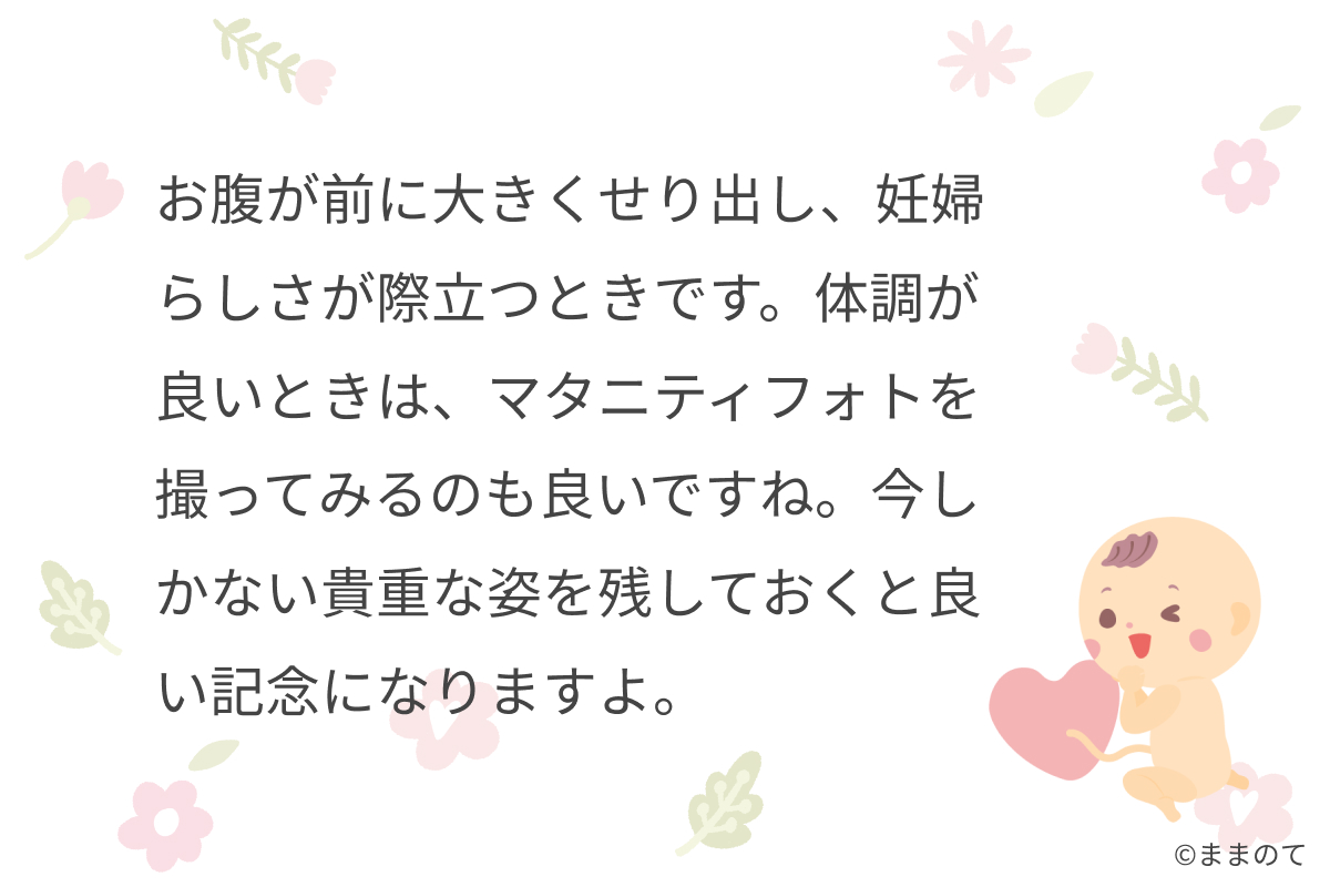 入院準備、産後の準備、髪のカットなど、やりたいことはリスト化して優先順位を決めるとスムーズにことが運びます。体調が良いときは、マタニティフォトを撮ってみるのも良いですね。今しかない貴重な姿を残しておくと良い記念になりますよ。
