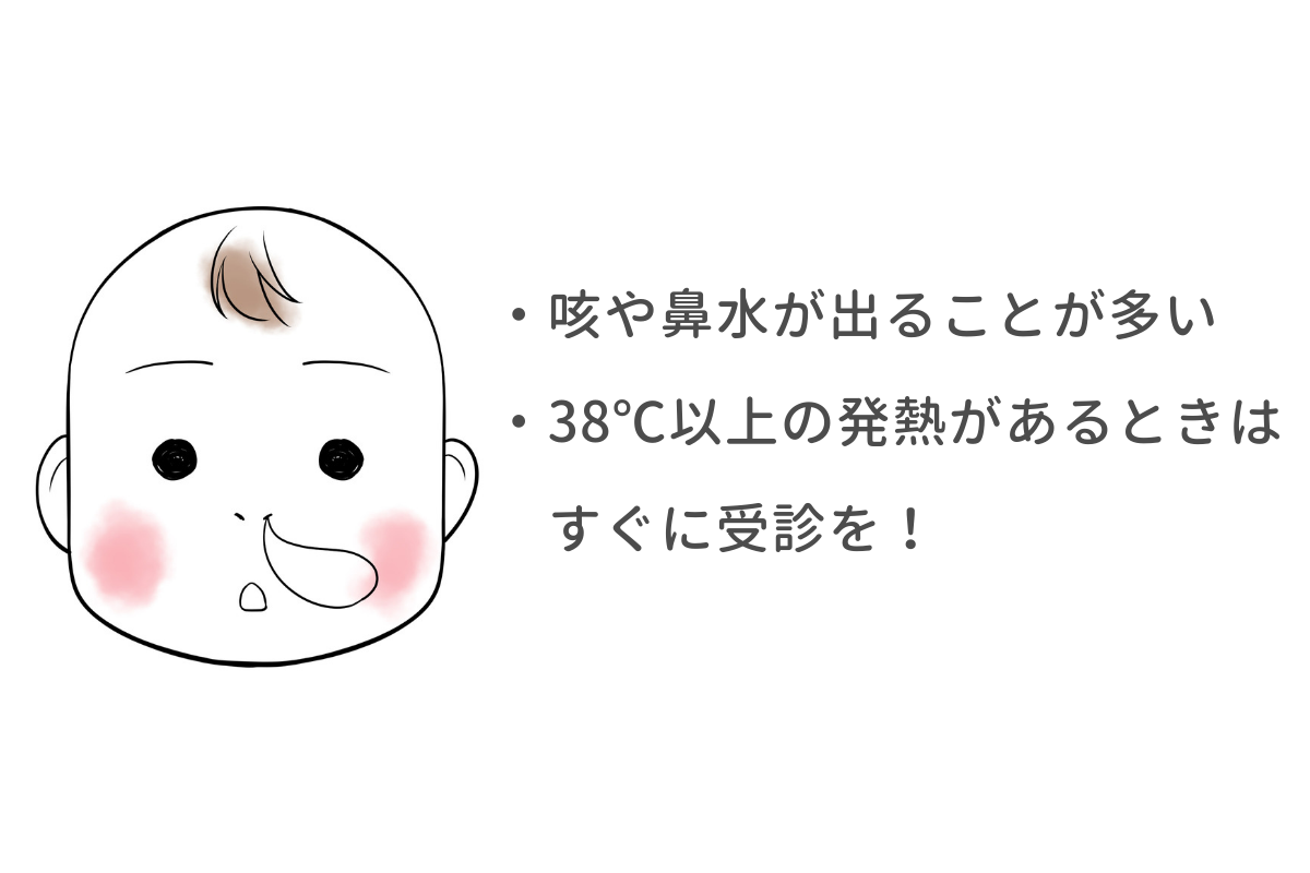赤ちゃんが母乳やミルクをしっかり飲めていなかったり、息をするとぜいぜいという音が聞こえたりするときは診察を受けましょう。38℃以上の発熱があるときはすぐに受診してください。